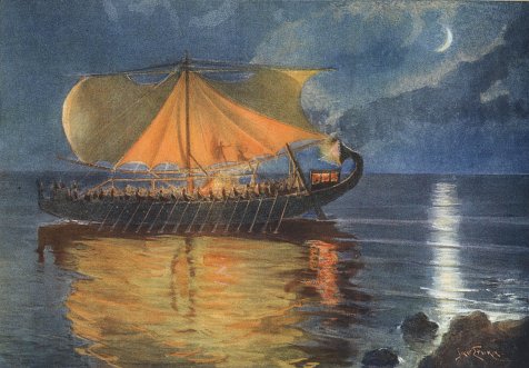 / Scena z "Odyseji" The boat belonging to Pheaciens brings Ulyses back to his land / Okręt Pheaciens przywozi Ulisesa do ojczyzny Paris, 1901 Galleries / Galerie |